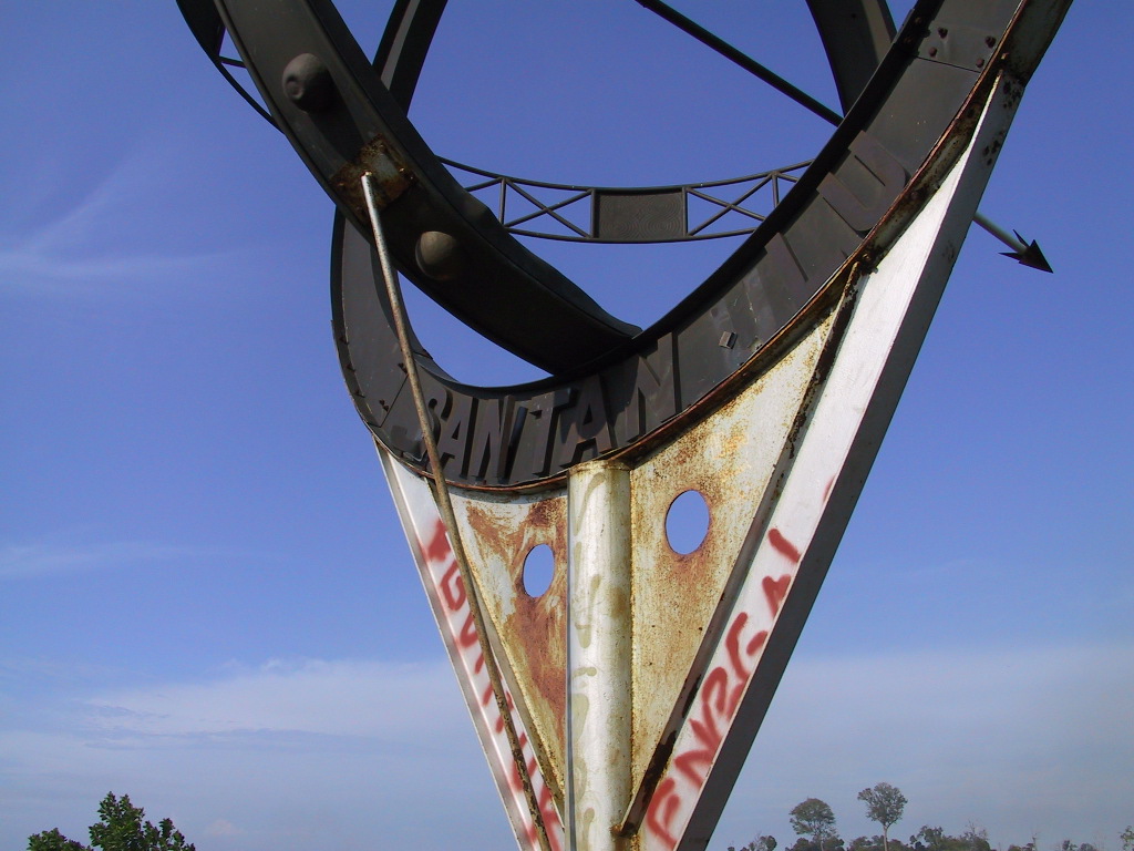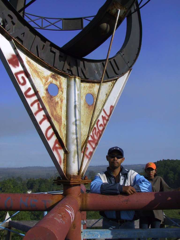 帰ってくるなり、EQUATORへ行こうと、出発。隣の市ボンタンへ向かった。あった、0度00分00秒のモニュメントが…ポンティアナにあったのと同じようなやつが。21日にはここへくればよい。