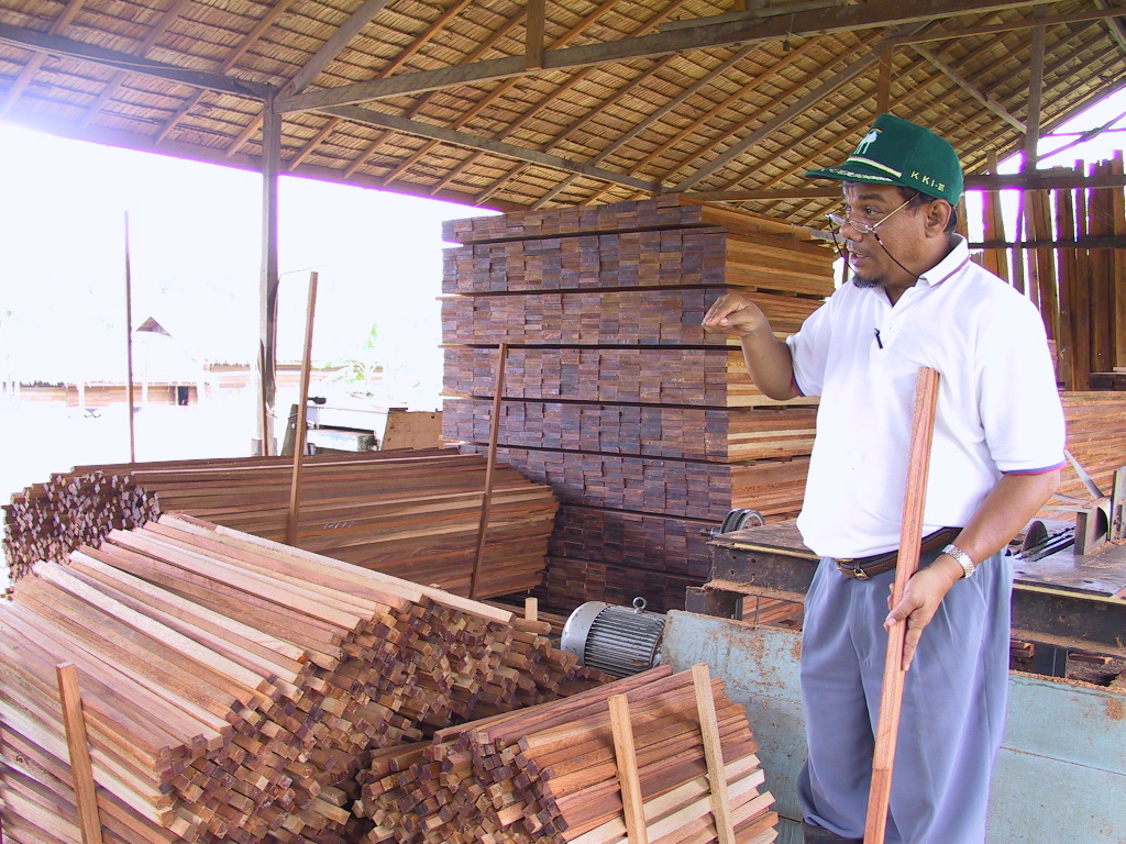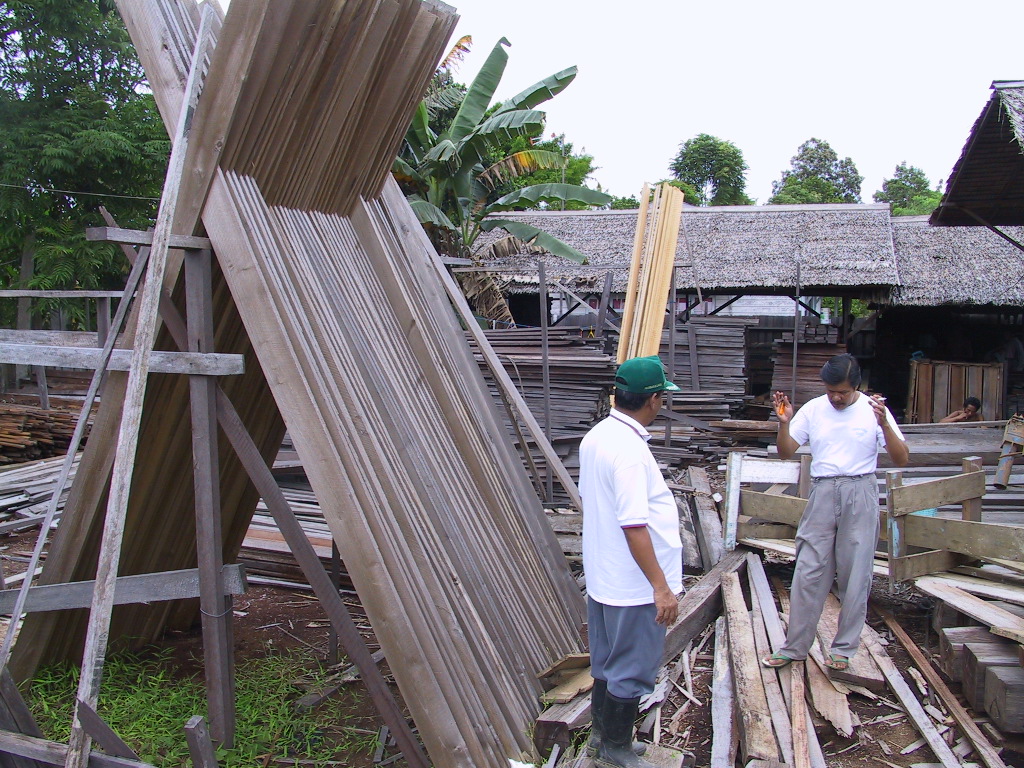 国有林の森林官は明日からサマリンダへ出張だとかいうことで、今日はお休み。次長のような人が地元の木材商のところへ案内してくれて、この家を訪問。社長らしい人とそのパートナーらしい人がおしゃべりしているところへ飛び入りした。おそらく日曜日の朝の団欒だったのだろう。
