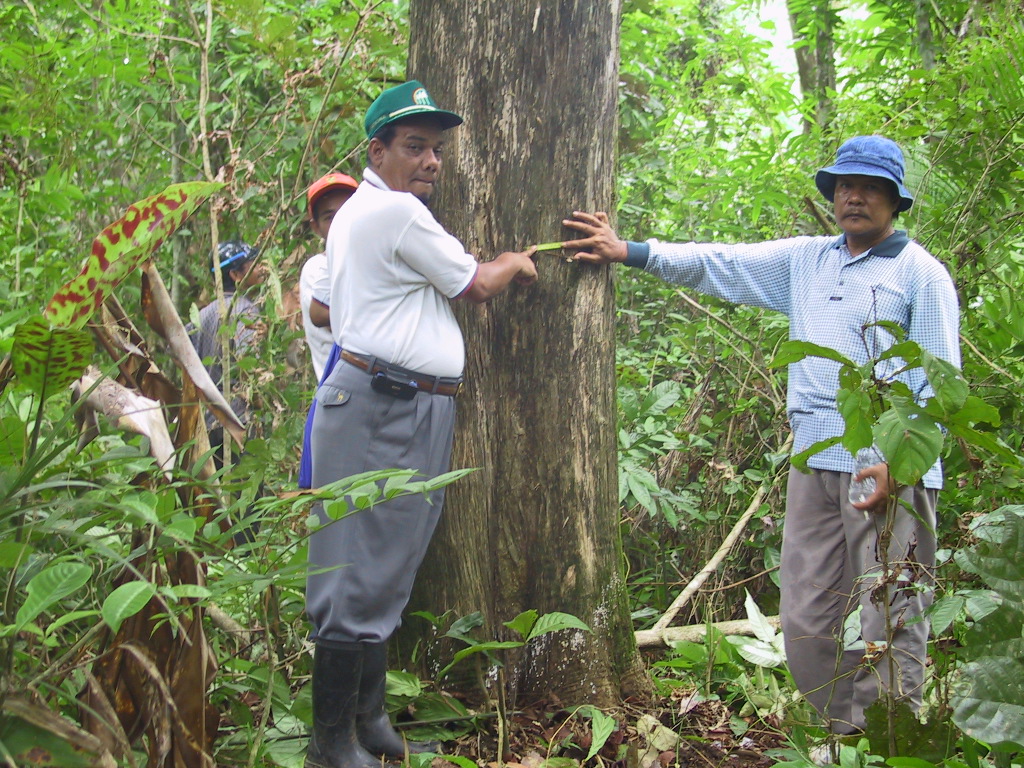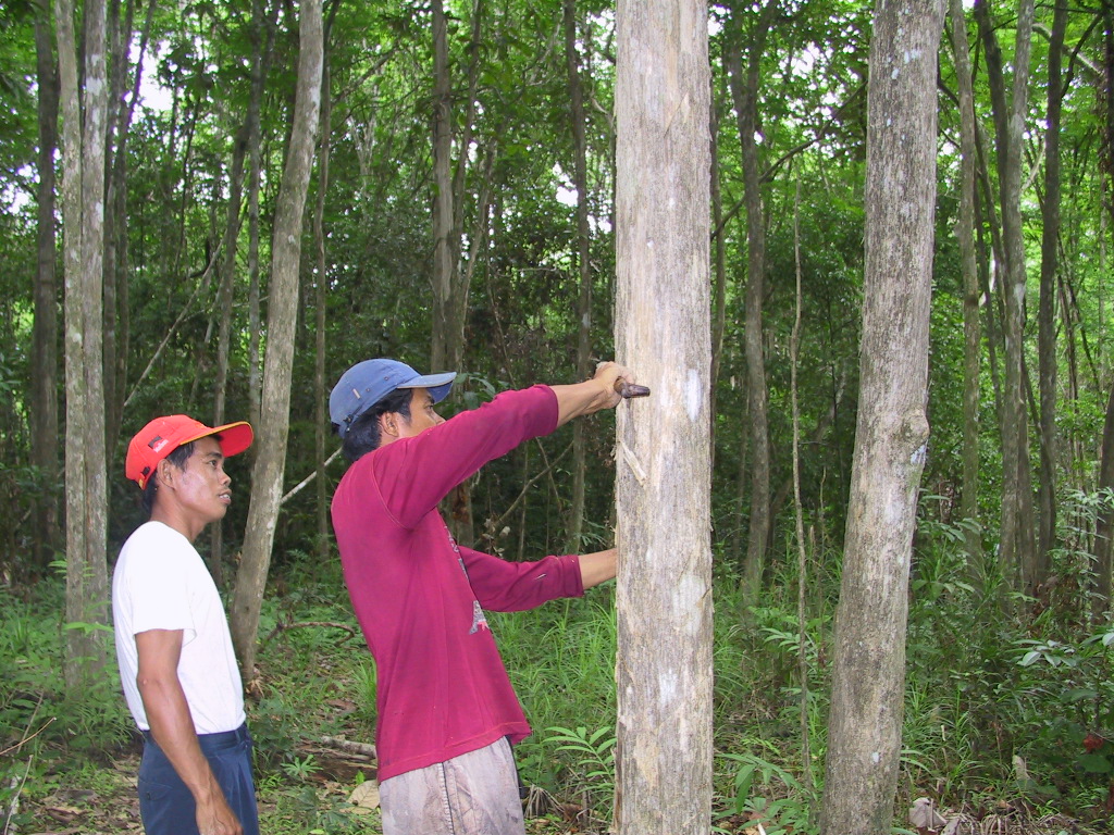 森林官はこの地域で一番太いスンカイを探して車を動かし始めた。見せてもらえるものはせいぜい60cm級でそれほど太いものではない。おそらく、焼畑をしたときに植えたものではなくて、植えたものを伐った後、天然更新で育ったものだろう。 私の不満足げな様子を見て、森林官は「明日もっと知っている人の所へいこう」と言って帰路に付いた。